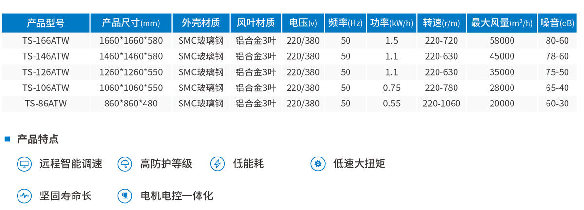 C、適用于園藝溫室大棚通風(fēng)降溫、畜牧場降溫。